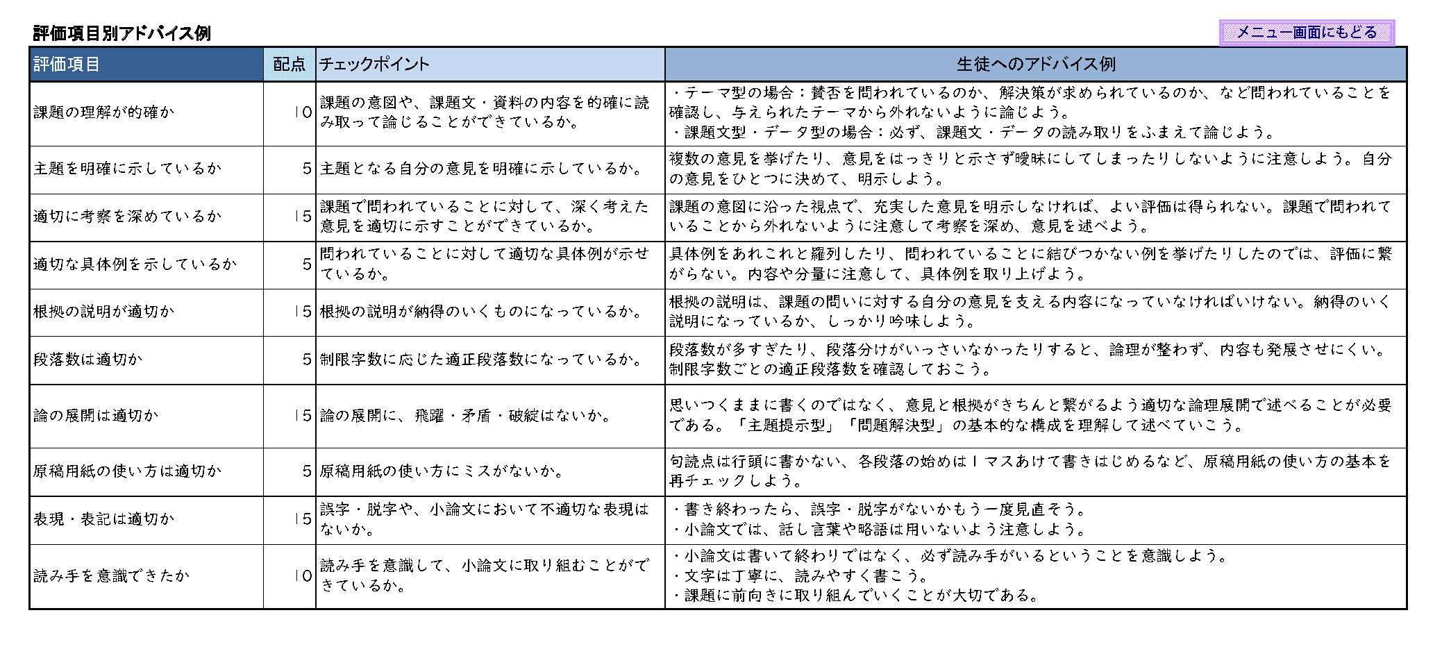 ● 文章中断などの理由で極めて低得点となった生徒さんについては、その大幅な減点の要因を表示します。
