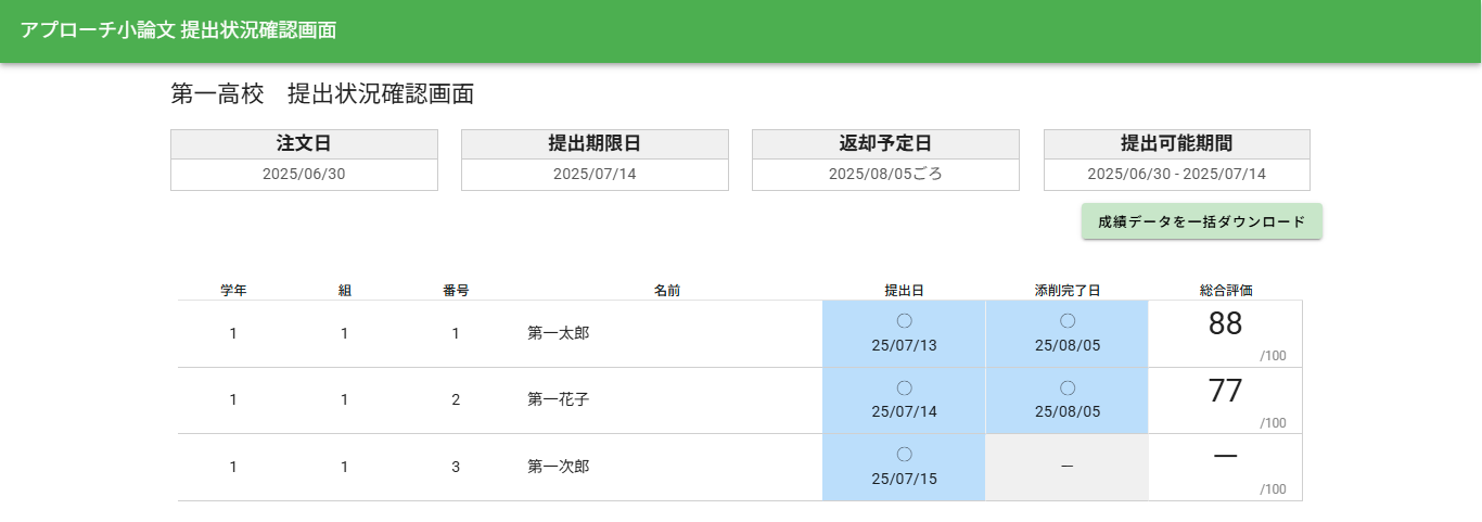 先生は、「(先生用)第一学習社 小論文ポータルサイト」で提出状況、添削結果をご確認いただけます。