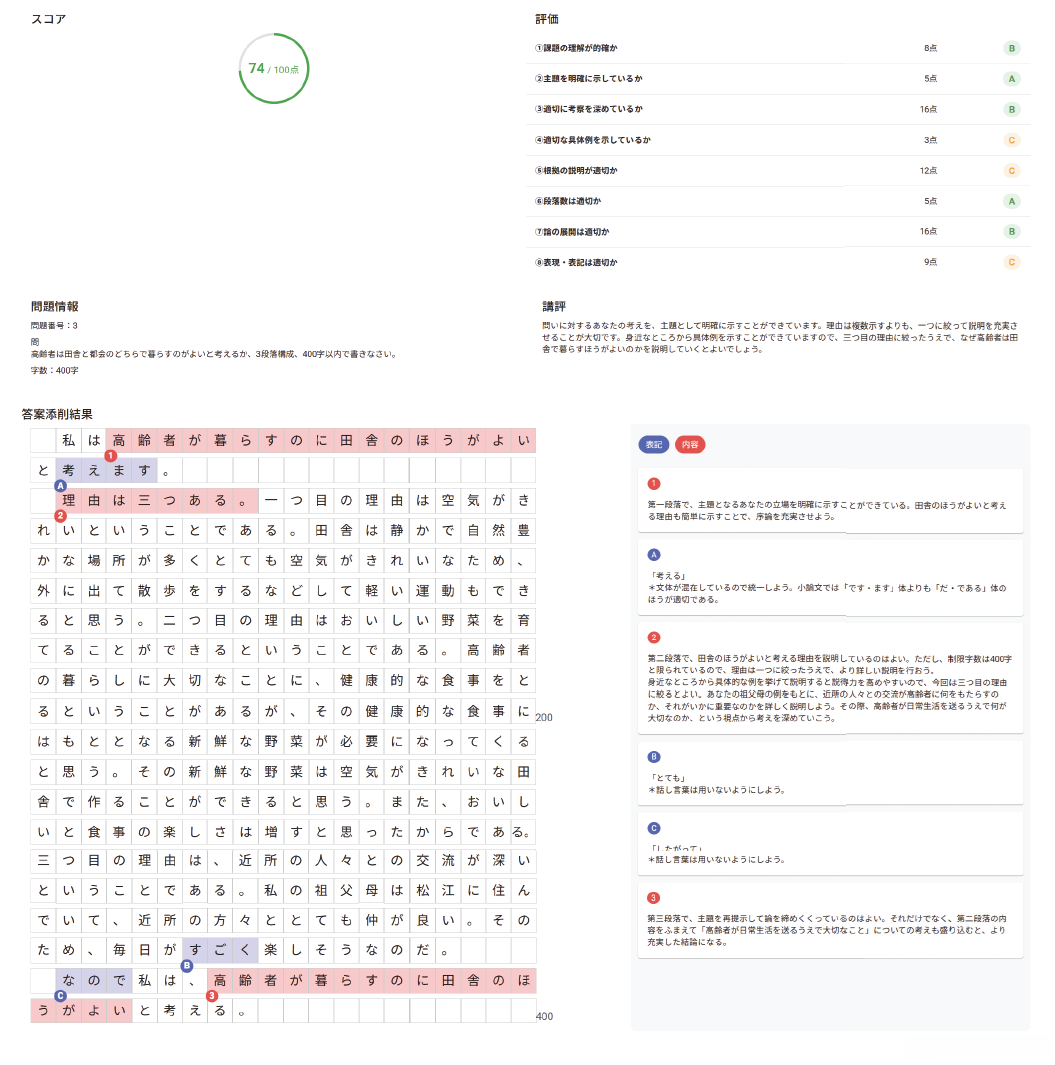 丁寧でわかりやすい添削で、小論文学習がはじめてでも安心して取り組めます。